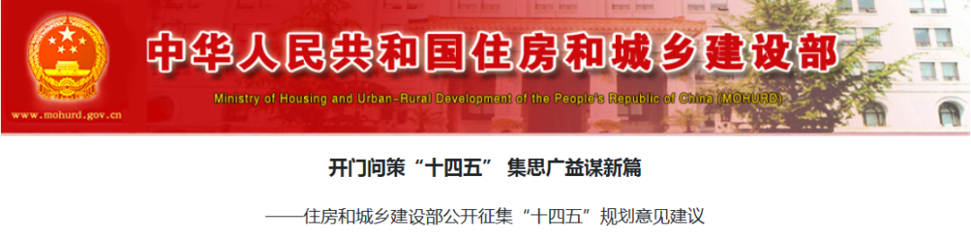 住房和城乡建设部公开征集“十四五”规划意见建议