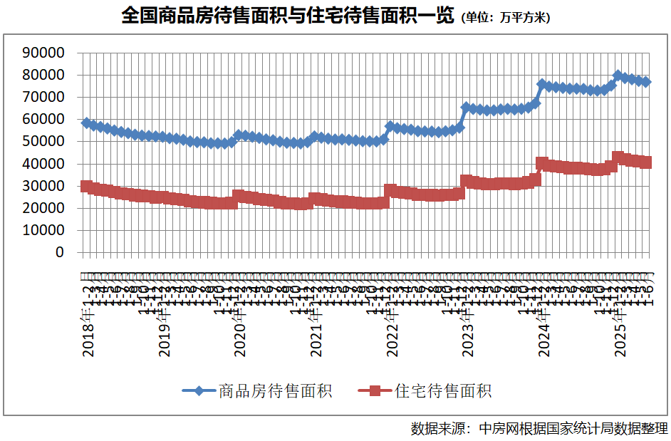 此外,从商品房库存看,连续四个月减少。截至6月末,商品房待售面积76948万平方米,比5月末减少479万平方米。其中,住宅待售面积40821万平方米,减少443万平方米。