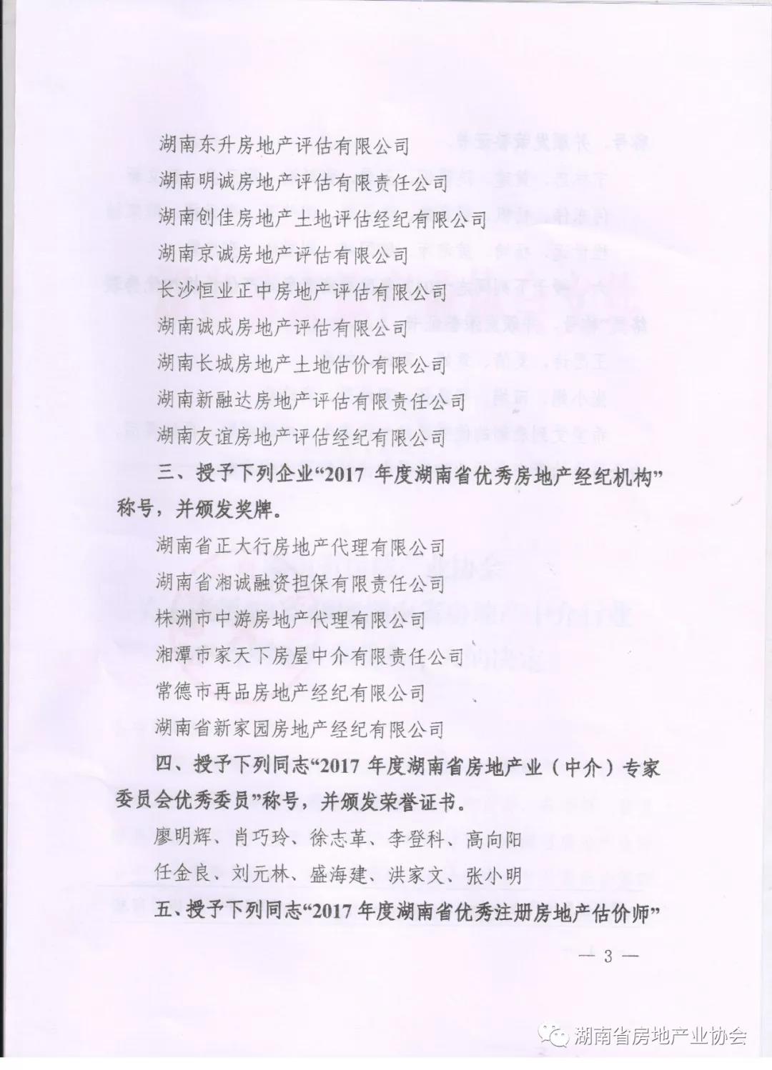 表彰2017年度湖南省房地产中介行业优秀单位和优秀个人