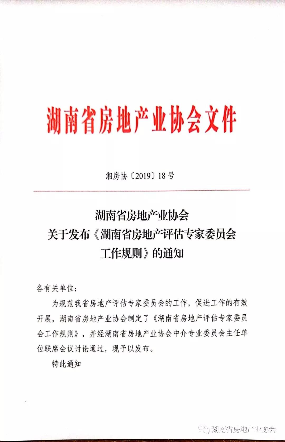 关于发布《湖南省房地产评估专家委员会工作规则》的通知