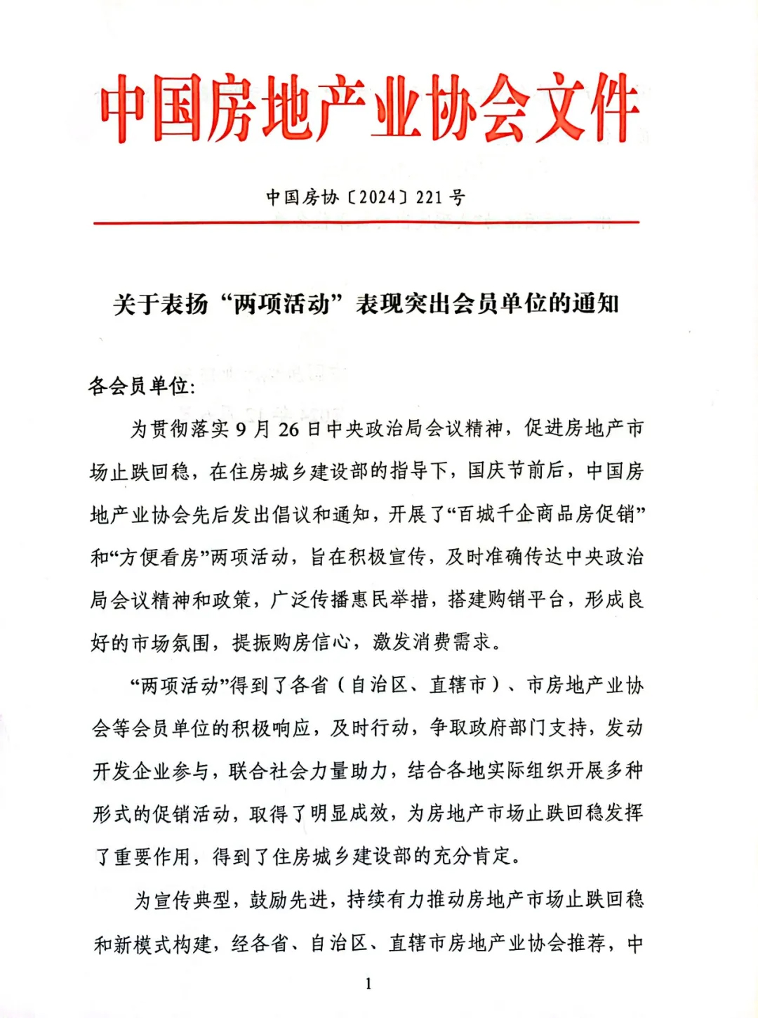 为贯彻落实党中央关于促进房地产市场止跌回稳决策部署,我会积极响应中国房地产业协会倡议开展“百城千企商品房促销”和“方便看房”活动。我会在此次活动中及时行动,争取政府部门支持,组织发动开发企业参与,联合社会力量助力,结合各地实际组织开展多种形式的促销活动,取得了明显成效,为房地产市场止跌回稳发挥了行业协会的作用,得到了中国房地产业协会的点名表扬。