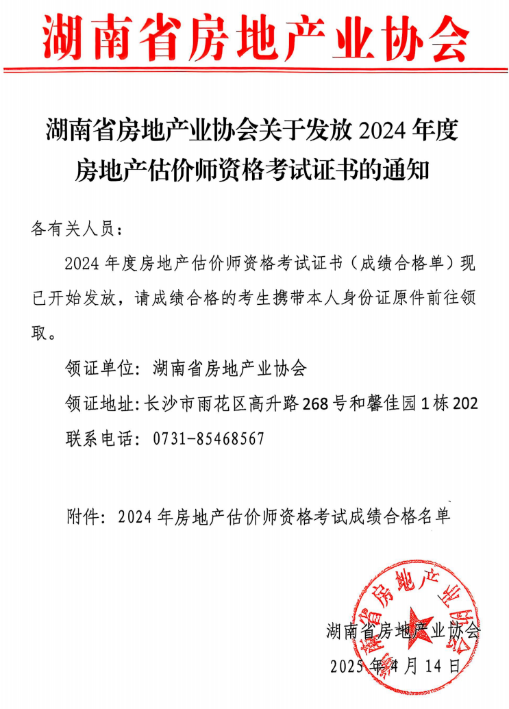 关于发放2024年度房地产估价师资格考试证书的通知