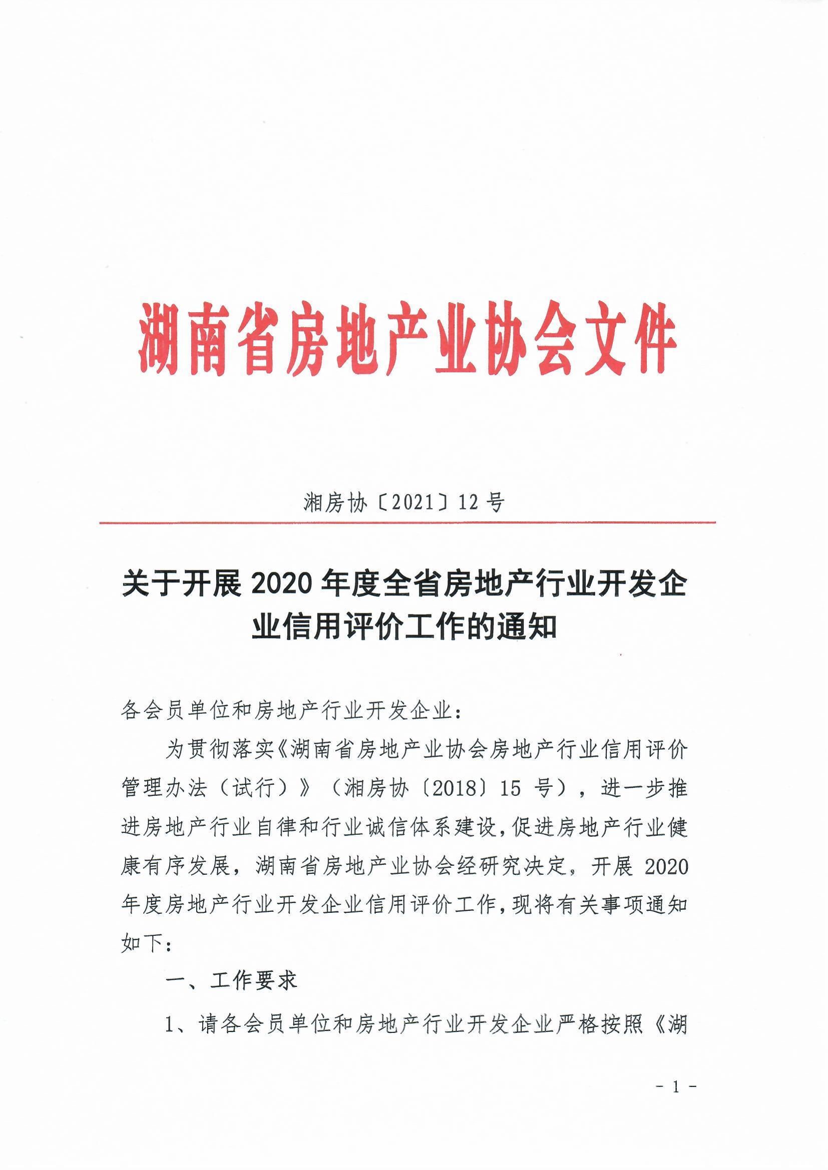 关于开展2020年度全省房地产行业开发企业信用评价工作的通知
