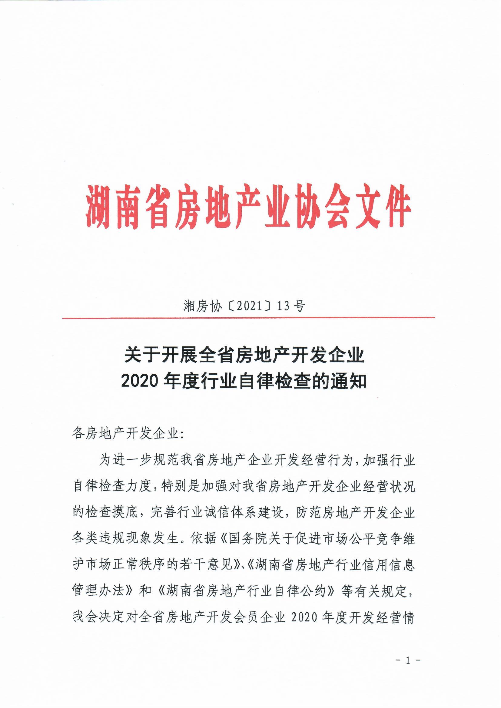 关于开展全省房地产开发企业2020年度行业自律检查的通知