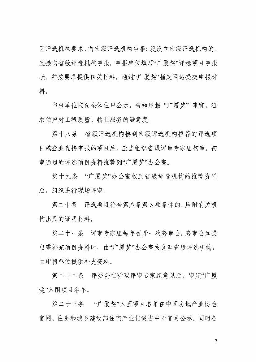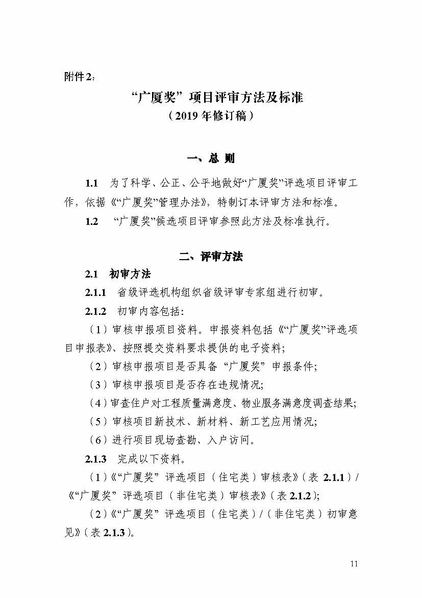 关于印发《“广厦奖”管理办法》、《“广厦奖”项目评审方法及标准》(2019 年修订稿)的通知